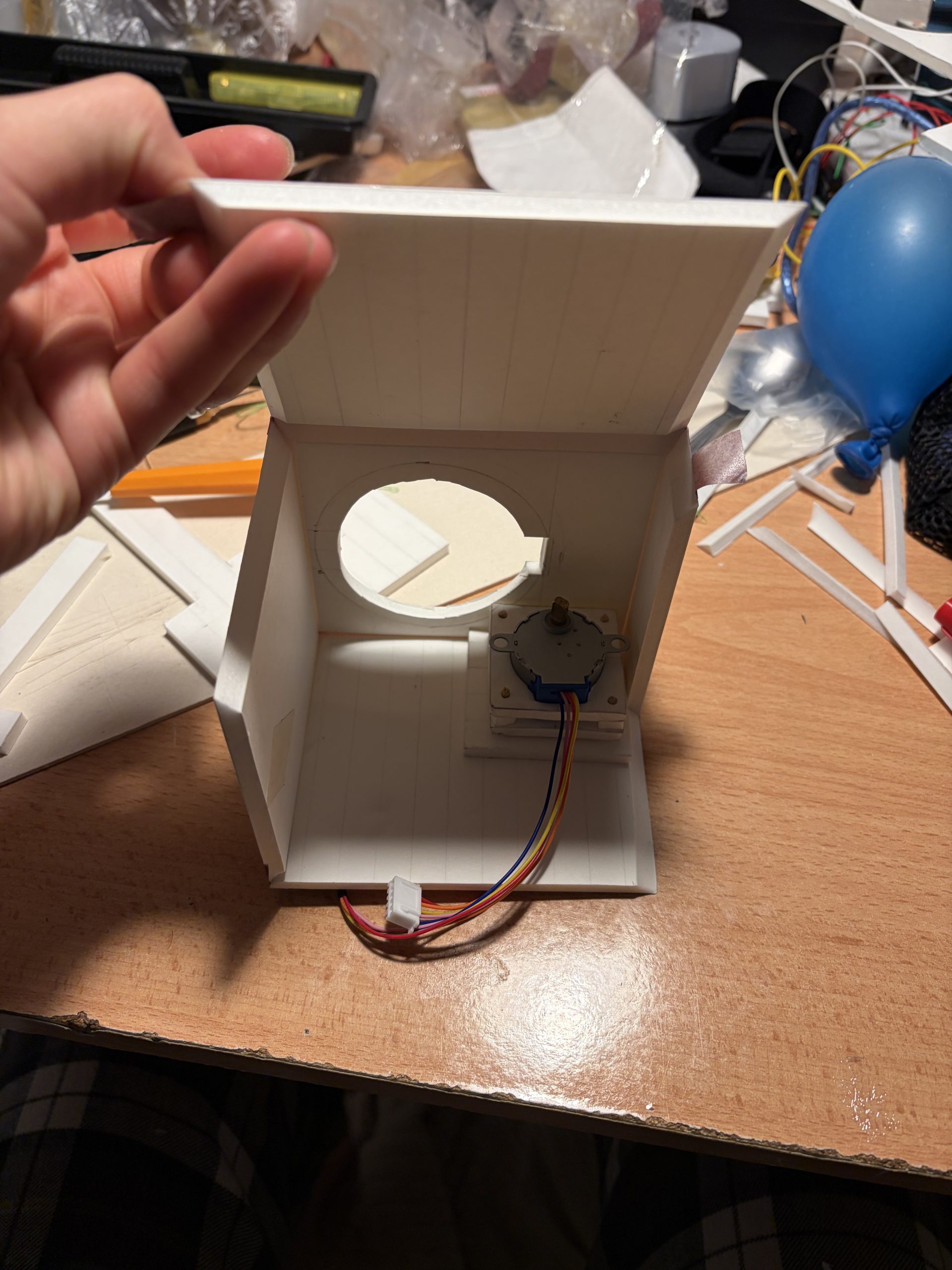 problème : pour inspirer et aspirer l’air, il faut soit 2 pompes soit 1 pompe qui fait 2 sens -> j’abandonne l’idée d’utiliser la pompe, au lieu de celle-ci, je décide d’appliquer le step moteur