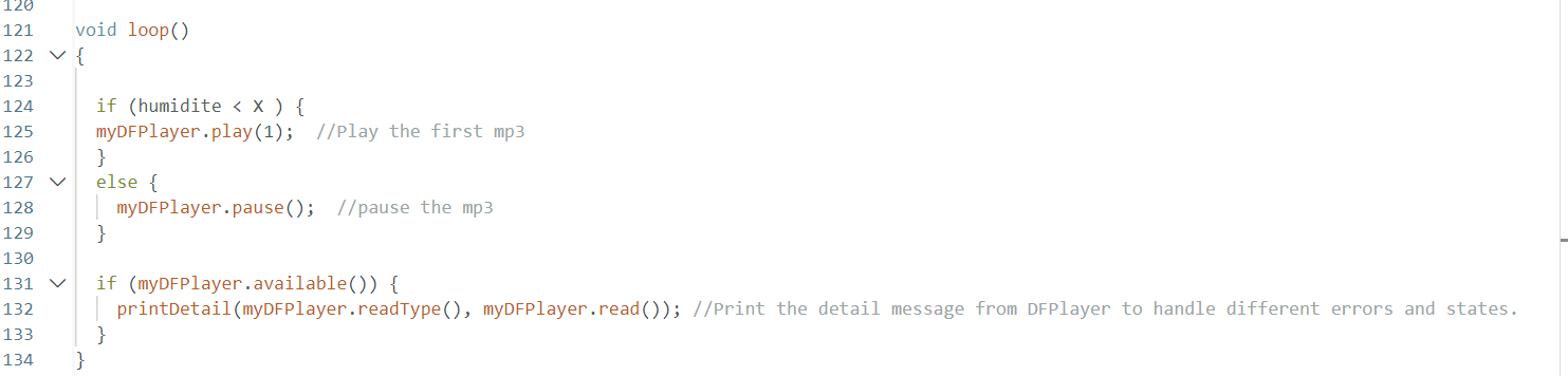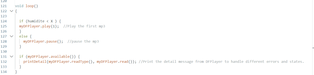 –> Produire un son avec le Dfplayer mini selon les taux d’humidité relevés grâce au capteur